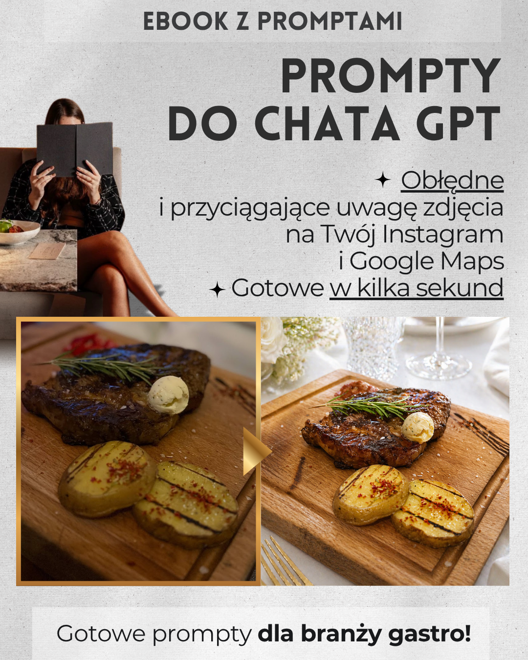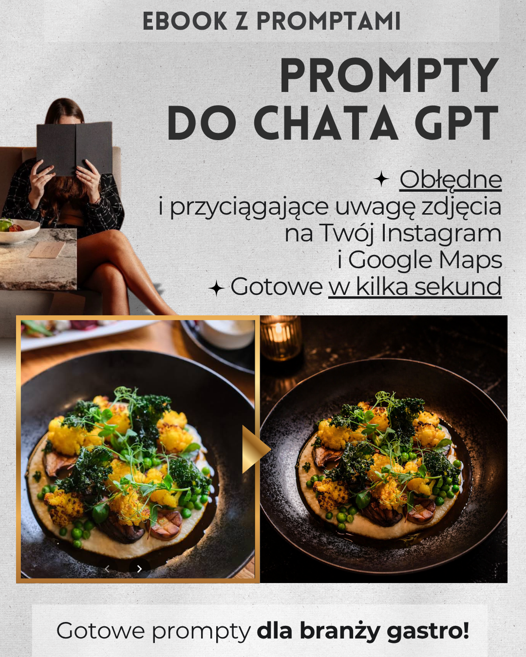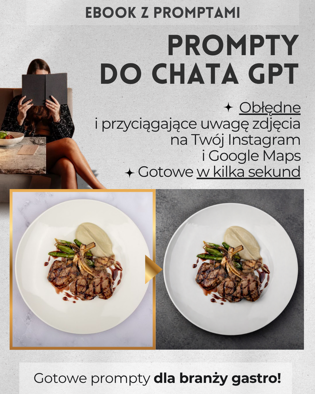 E-book: Menu premium bez fotografa, 28 gotowych promptów AI